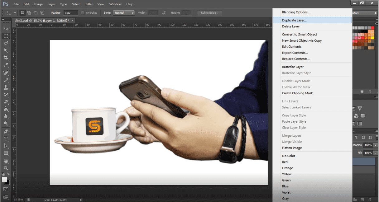 Pertama, kita select terlebih dahulu bagian yang mau kita rubah. Bisa pakai pen tool ataupun lasso tool.
